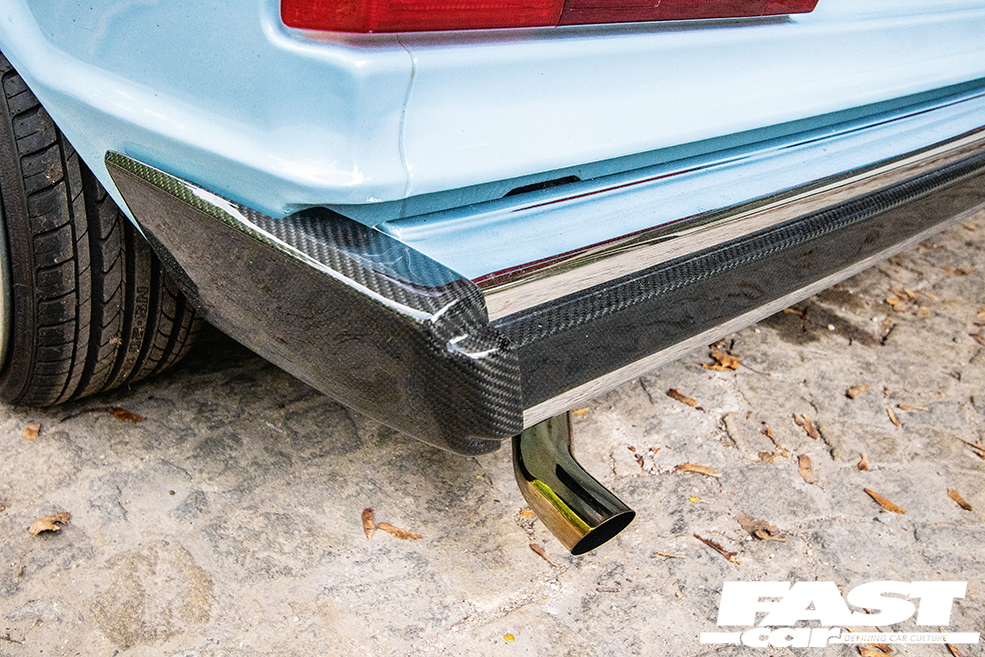 Lavatorial accoutrements aside, this really is a fabulous fusion of show and go, all with a keen and wry eye on the show scene of the turn of the century. The way it sits ultra-low over those custom splits is eye-wateringly badass, and it’s an inspired wheel choice: “Ronal Racing was my original idea, although there was already a modified Mk1 Scirocco with Ronal wheels at the time so that was that,” he says. “I personally always like 0” wheels, and through nepotism I made a new friend, Dirk – owner of Zero–RS Racing – whose company is based on 0” wheels. He suggested OZ Fittipaldi wheels; I like the look of them, but I redesigned to 0” and created a smaller star. The star was originally bronze, and now it’s silver which is more my style.”
