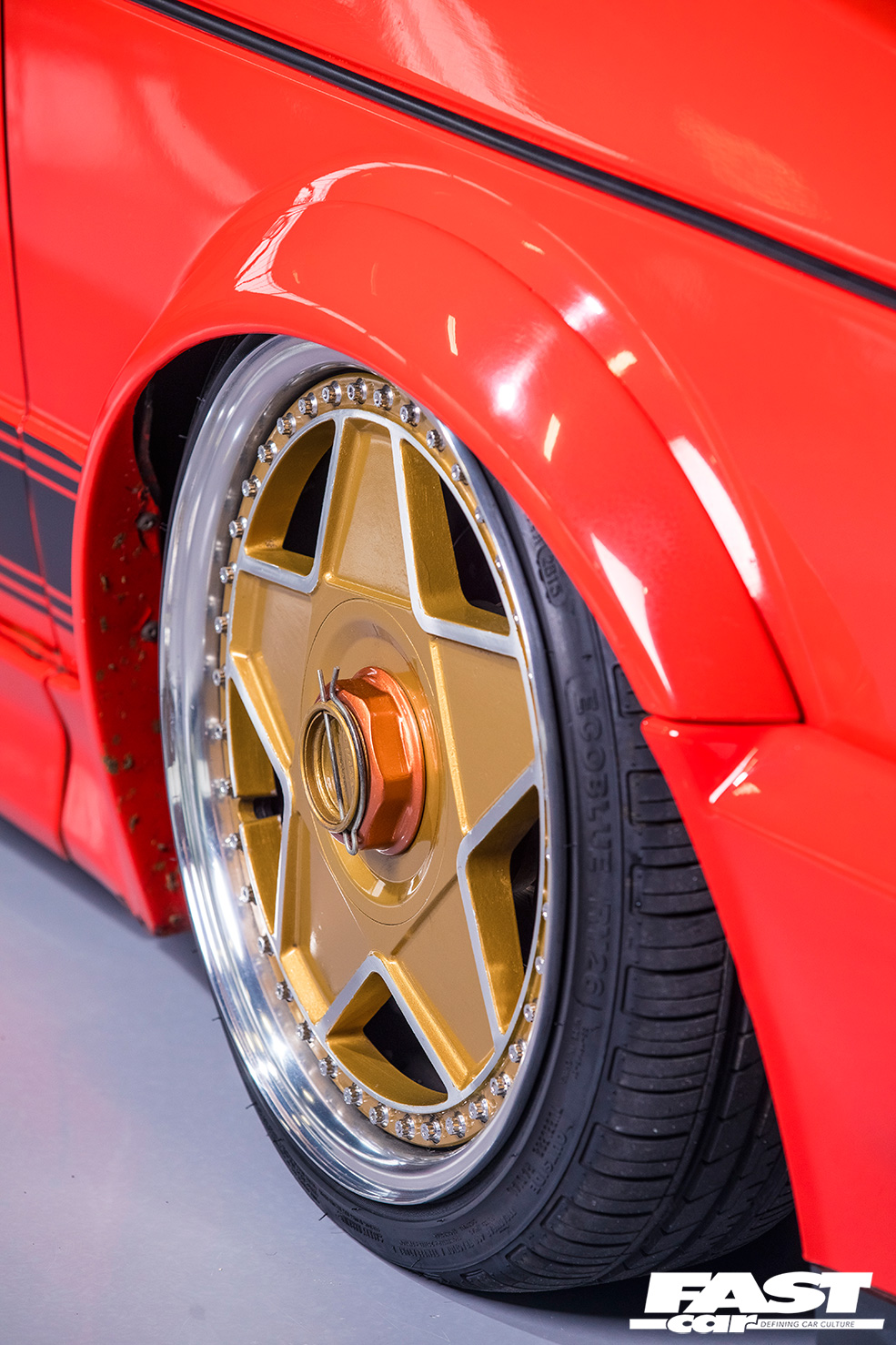 The final flourish for this build is the wheels, which are frankly gorgeous. If you saw this van on the show scene last year you’ll have found it rolling on Fifteen52 Snowflakes, but the rims it’s packing now have a retro supercar vibe, the 3-piece Autostrada Modena’s design being lovingly inspired by the Ferrari F40. Perfect!