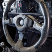 Sensible? Alright, perhaps sensible is the wrong word. You see, this isn’t the boat-anchor diesel that used to be fitted to Mk1 Golfs back in period. That 49bhp plodder wouldn’t cut the mustard here. No, the HavAir crew have shoehorned in a PD130 turbo-diesel from a Mk4 Golf; they’ve also uprated the intercooler, stuck in some bigger injectors, knocked up a custom 2.5” exhaust system, and had the motor remapped to 193bhp. So it’s not a plodder. It’s an absolute headcase. All that horsepower in a tiny little vehicle like this, coupled with all of that stump-pulling torque? The damn thing’s a riot.
