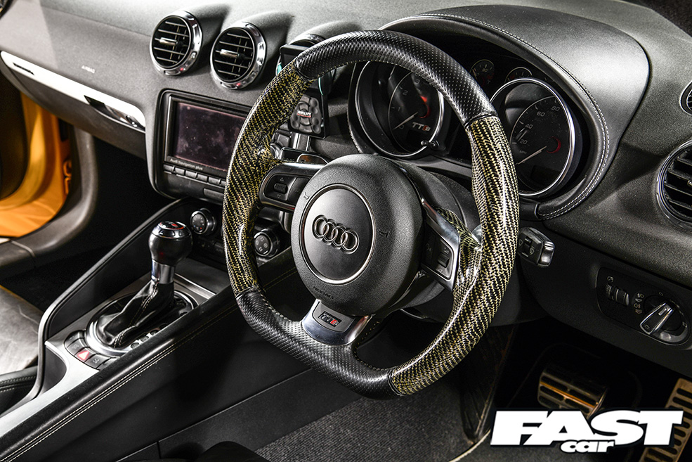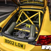 The aggressive look on those brilliantly weird Messer wheels is a full-on show-stopper, with the angriness further ramped up by the RS front grille, and it makes all the right noises too; while the TTS is mighty in stock form, Brendan took it to a mate in Belgium to have a Scorpion system custom-modded to help unleash the power from a fresh remap, meaning that he’s now rocking 315 very noisy horses. Everyday show car? Sure, and the interior’s all decked out to suit, with those comfy and supportive RS4 seats along with the pukka RS wheel and all of that fancy custom yellow carbon and Kevlar.