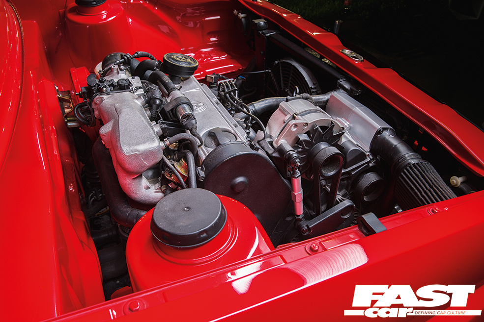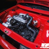 Factory 1763cc ‘1H’ G60 engine and five-speed gearbox, induction kit with custom inlet, engine bay cleaned with wiring and coolant hoses hidden in the chassis legs, scuttle panel removed, ECU, battery and coil pack relocated, body-coloured brake servo, top-fill radiator