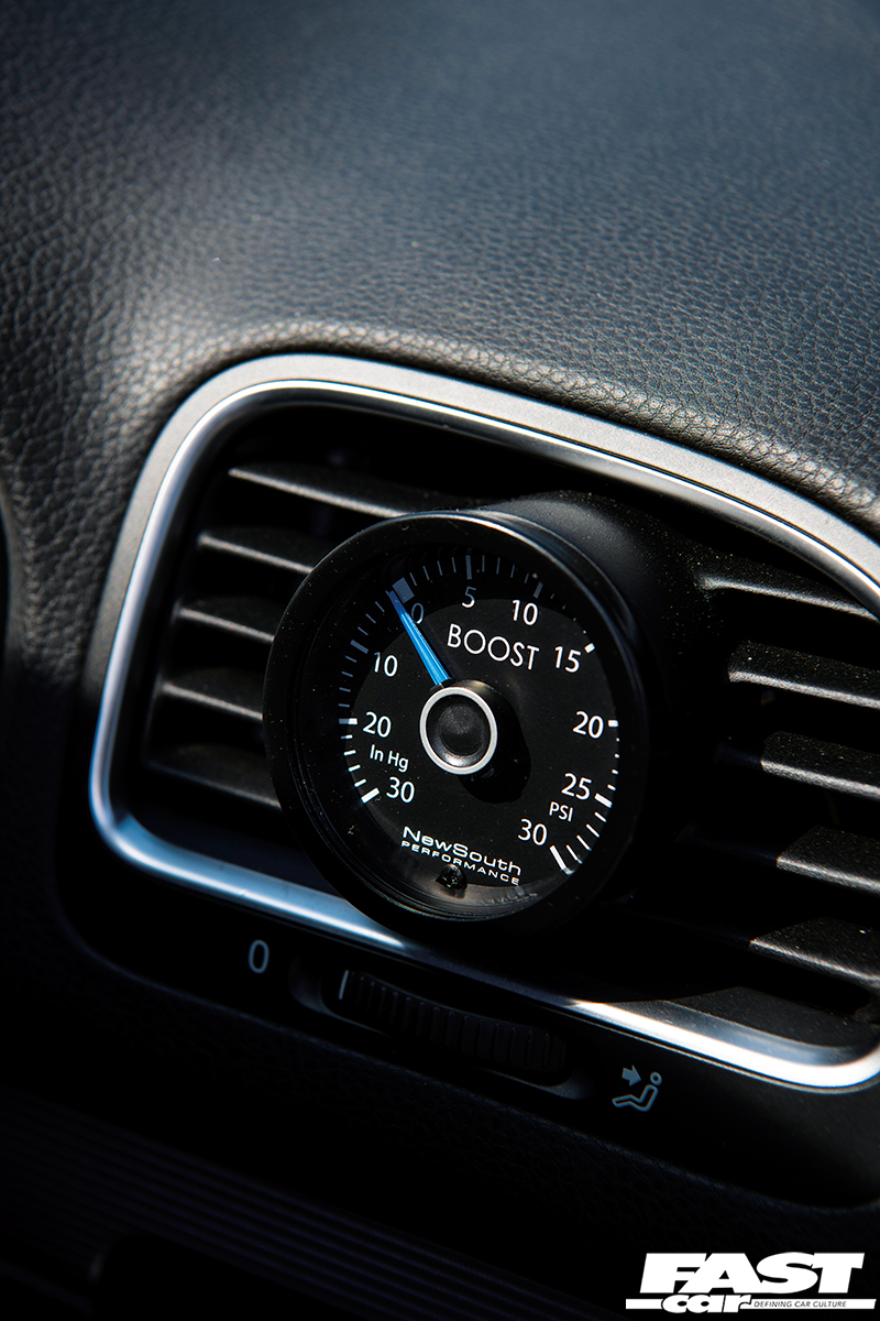 The specs are really quite impressive. Fully forged, the engine now sports ZRP rods and Supertech pistons and valvetrain; the turbo is a mighty Garrett G25-660 unit with Turbosmart external wastegate, sitting on a Nortech manifold and working hand-in-hand with a Wagner Competition intercooler. The fuelling has been carefully scrutinised, and now comprises APR high-pressure and low-pressure fuel pumps and the high-flow injectors from a Porsche 997.2. With the aid of Revo cold air induction, and an AEM water/meth injection setup with 4x250cc nozzles into an RPC intake manifold, we arrive at the magic figure of 540bhp, and naturally the transmission has been upgraded to suit – we’re talking uprated Mk7 R clutch packs and a TVS Stage 3 DSG tune, plus SuperPro gearbox mounts. An incredible formula, all keenly engineered for reliability, and of course it’s important to note that form is just as important as function. After all, Brandon is a man who takes pride in his ride, and the finish here speaks for itself.
