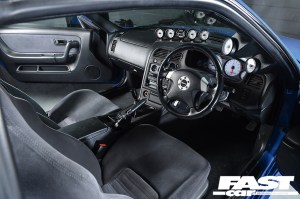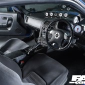 To match the thoroughly overhauled and improved engine and drivetrain, the R33 has also been treated to a set of Kawasaki coilovers, which are up to the job of keeping the car firmly on the road. Similarly, in the name of control, the brakes have also been uprated to KSport six-pot calipers with huge 365mm discs at the front, whilst the original Brembo items reside at the rear.