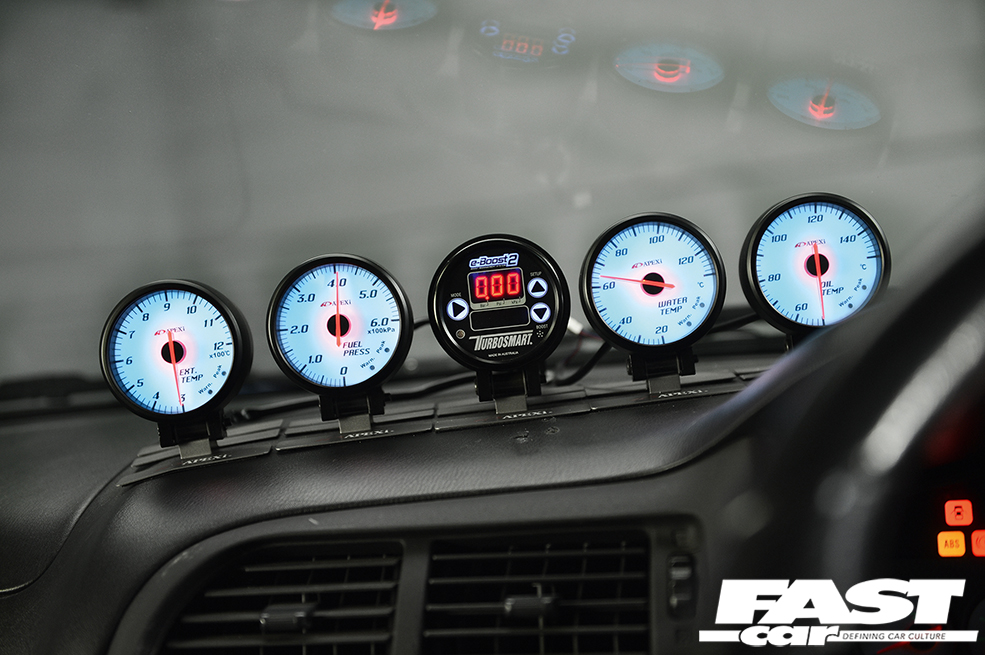 Standard interior trim, Apexi and AEM gauges, Turbosmart boost controller