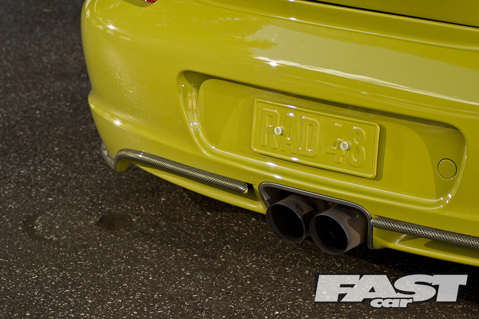 That same attitude was clearly at work when Mario set about styling the exterior of his car, hence why you’ll now find lashings of custom carbon fibre both front and rear. That front splitter is a complete one-off, a custom part designed by Mario for this very car, then lovingly re-created in super lightweight carbon fibre. It’s a similar story with those aggressive as hell spoilers; there’s a subtle little ducktail (a nod to racing Porsches from back in the day) and a massive, imposing aerofoil that really wouldn’t look out of place on a fighter jet. They’re every bit as divisive as the rest of the car, very much the result of Mario’s personality and eye for detail.