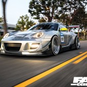 “I’m really a JDM fanboy at heart,” he laughs. “And have long been a fan of the work of Muira-san and the various Japanese cars he’s worked on, so I was ecstatic to be able to collaborate with him to develop this Pandem wide arch kit, which was the first in the world on a Porsche Cayman,” says Dionne. ‘It was debuted on the car at the Toyo booth at the 2016 SEMA show in Las Vegas.”