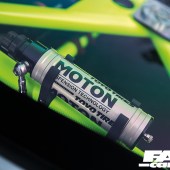 Moton 3-way coilovers, Moton line quick disconnects, Tarett billet control arms, Tarett caster arms, Tarett billet mono ball top hats, Tarett billet bladed anti-roll bars, Tarett extended billet drop links, Rennline rear brace and tow brackets, Rennline rear toe arms and bump steer kit