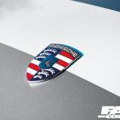 Pandem wide body kit with custom front bumper, DIY billet swan-neck spoiler upright and spoiler brace, DIY side skirts and side air guides, DIY double-stacked front and rear canards, DIY GT500 6-element full diffuser, DIY 3-piece front splitter, custom spoiler element, Spyder Auto headlights and taillights, P4P polycarbonate windows, 3D-printed front arch vents, full stainless-steel body bolt set, aluminum washers, Tram-Browning UHF antenna, P.I.D. livery, Acid green mirrors, custom Porsche red/white/blue crest, Cartek solid state battery cut-off switch