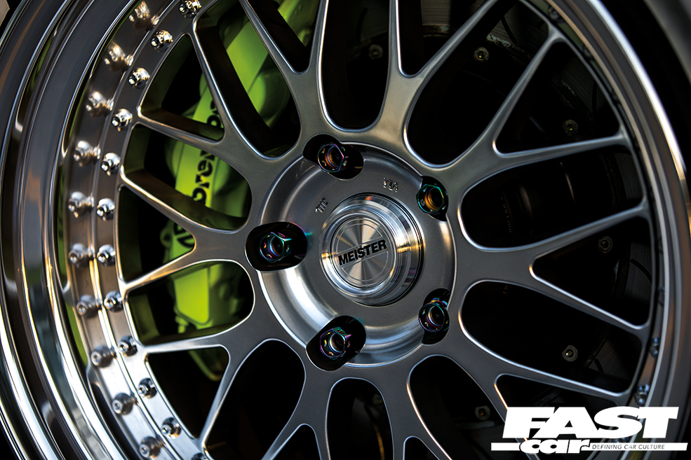 With the bodywork looking like a genuine Super GT racer for the road, getting the right wheels was a crucial aspect to carry the look off to perfection, and Dionne’s choice of a set of 19in Work Meister M1s, 11in wide at the front and 14in wide at the rear, complement the Japanese inspired exterior perfectly.