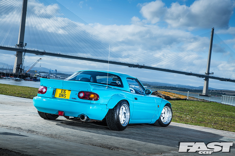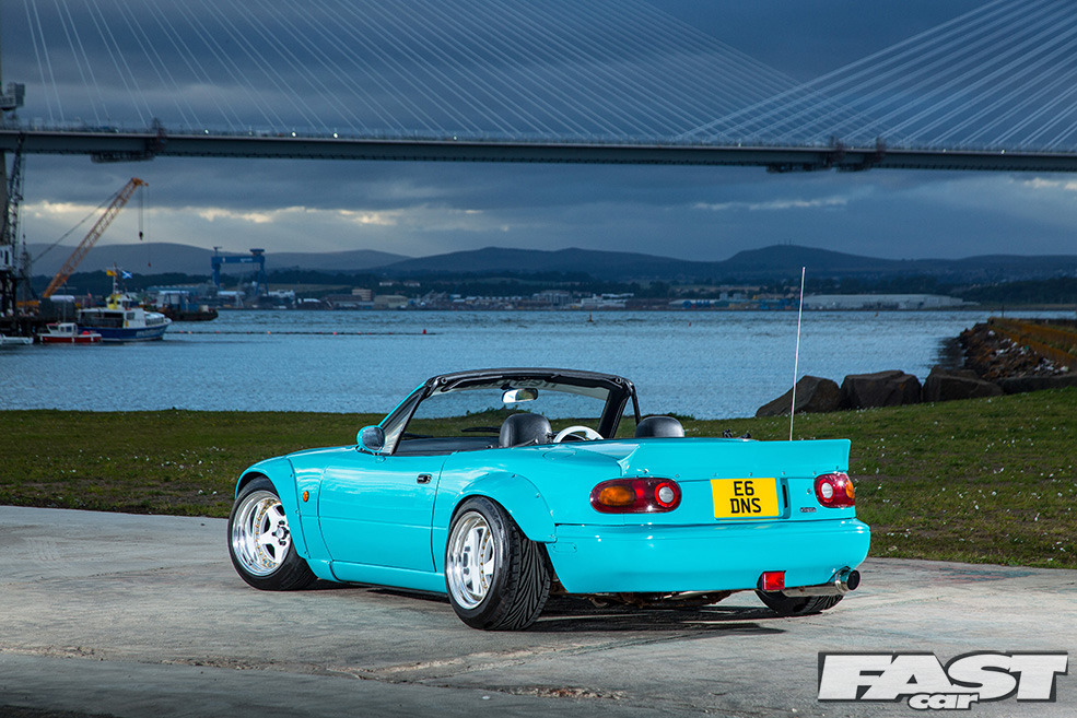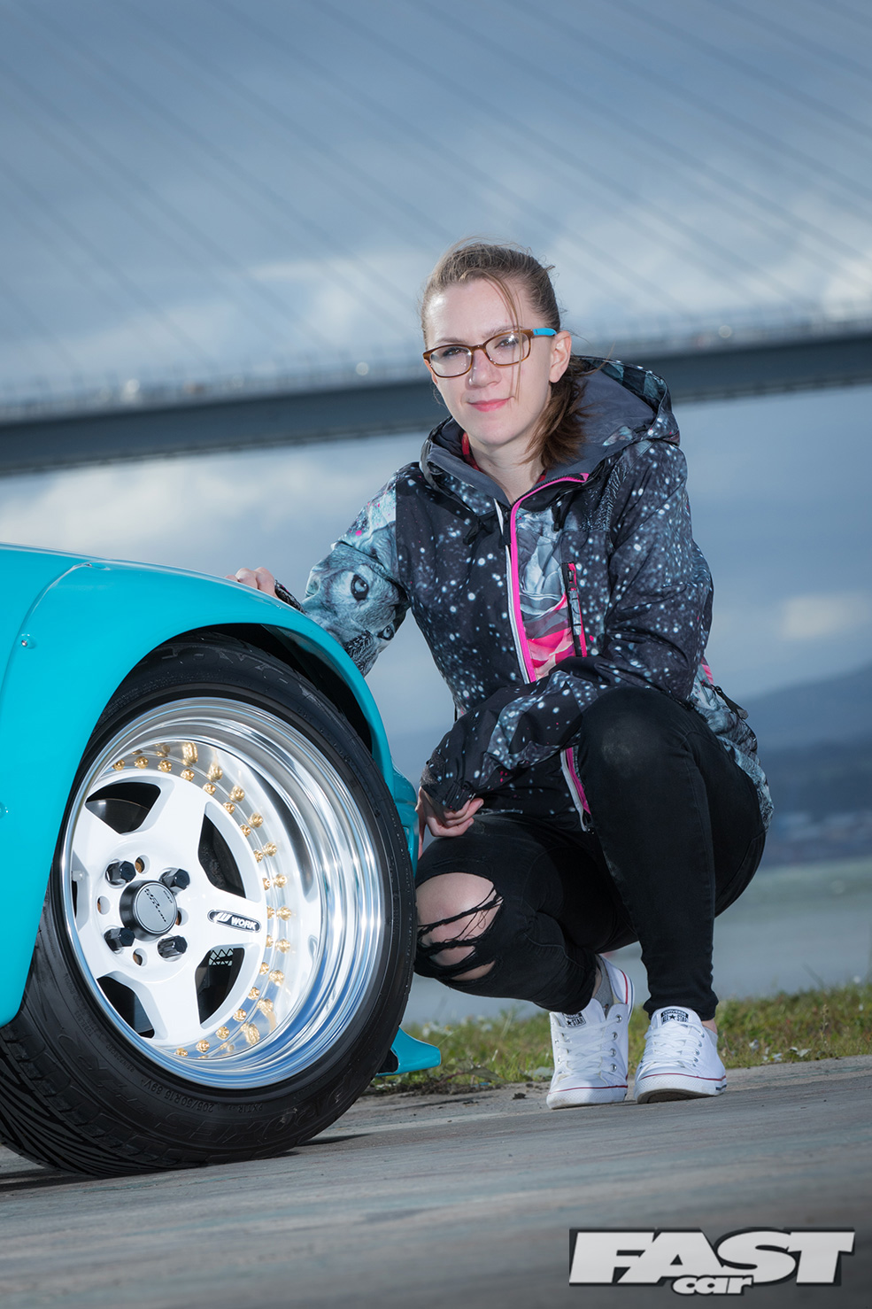 Other than a custom exhaust, there are no performance mods, but this is where Eilidh may venture next. Until then she’s happy to cruise around in her wide and wild modified Mazda MX-5, having the daily driver and stunning show car all in one!