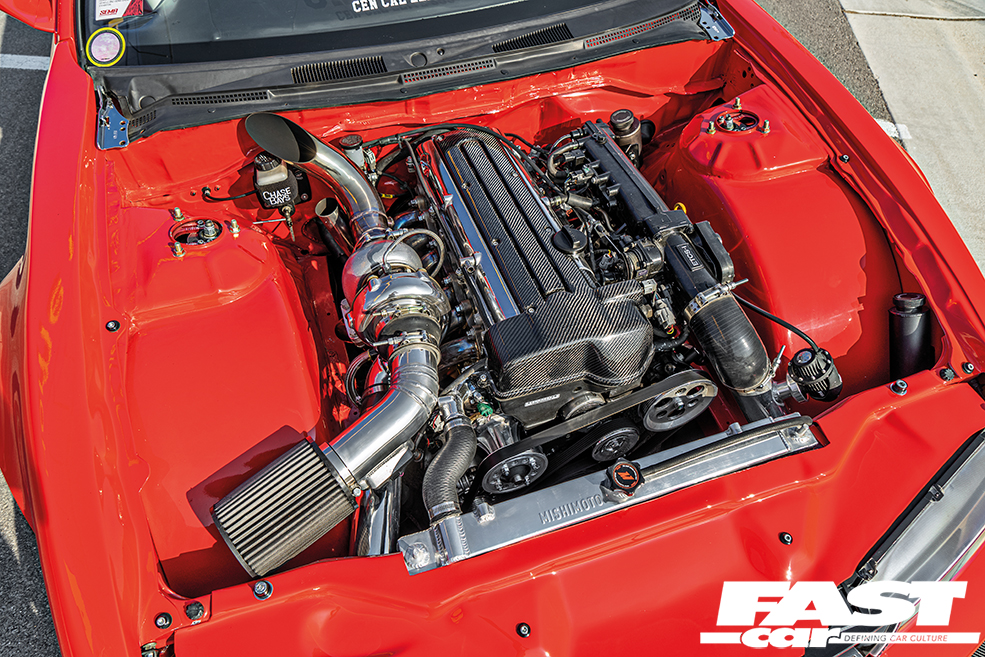 “In April, I collected my new wide wings, new aero, and picked up the new engine from my good friend David at JDM of California,” he goes on. And what engine had he chosen? Why, the revered Toyota 2JZ-GTE – a choice so offbeat for an S14 that it was sure to break necks. Not only that, but he opted to go single-turbo thanks to a Driftmotion billet 6262 upgrade, fully rebuilding the engine and mating it to a Nissan 370Z manual transmission. “All of the car’s progress has been carried out at home in my garage,” he assures us. “By July the motor was in, along with the new seats, aero and a few other parts. I attended Wekfest in August 2019, and took home 1st Place – Best Nissan again, two years in a row! I feel blessed to have my hard work pay off. In November I got the opportunity to attend SEMA in Las Vegas with the car, and this has been a long-time goal of mine. I got to meet so many people, along with the opportunity to be featured in Banzai, truly a blessing. People’s reactions when they see my build are pure love, I get so many compliments; my goal has always been to inspire with this build… and yes, I still have a few more incarnations to go! I hope to have my S14A remembered as one of the greatest. So, a lot more is coming.”