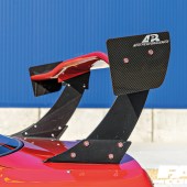 Lamborghini Aventador red paint, Origin Labo Aggressive bodykit with 75mm-wider front and rear wings, Big Country Labs rear spoiler with APR carbon end plates, APR carbon front splitter, DMAX taillights, DMAX rear window visor, Spyder headlights