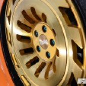 James settled on some seriously funky Radi8 turbofan-style rims set off in a brushed gold tone to prop up each corner once the Fanta livery was fitted – a bold choice that only makes the whole thing stick in your head that little bit longer! These are shod in sticky Nankang rubber which helps to transmit the power from that lightly breathed-on oil burning motor up front.