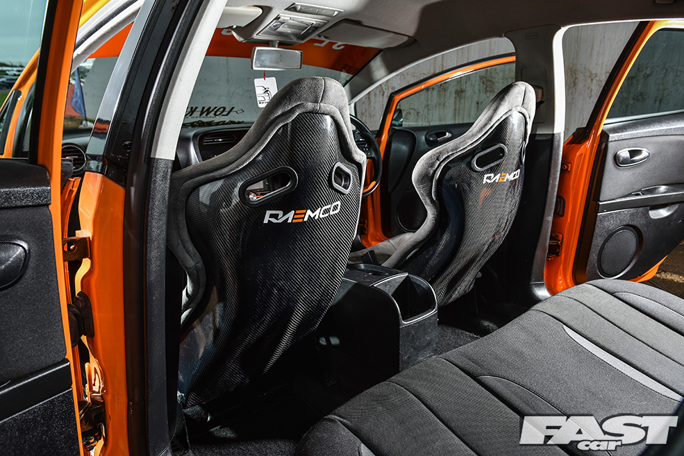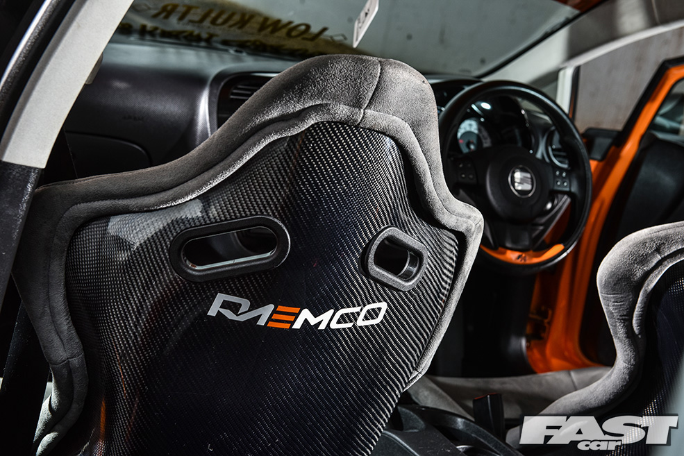 Next up came more subtly brilliant touches like the Triple R Composites splitters – slithers of gloss black on both the front and rear that really sharpen up the aesthetic – as well as those supremely sumptuous Raemco carbon fibre buckets which make the cockpit feel no less than a million dollars when sitting up front, to help put this car on the map more than ever before. But there was still something missing in James’ eyes, who wanted to find a way to take the SEAT’s status to the next level entirely.