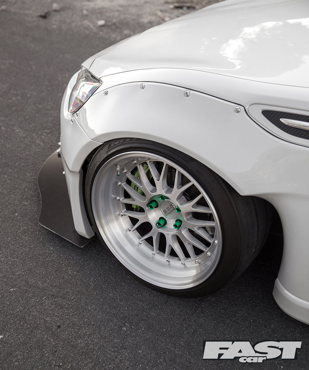 But thankfully, it was all worth the wait, as you can probably see for yourself. Keeping the car white to go with the clean theme has worked wonders on its new-found lines, especially when finished with touches like those rims and the contrasting lime green StopTech brake calipers tucked underneath. The team at LTMW went for an Air Lift air suspension system while adding the body kit to offer Freddy proven, reliable lows which can be adjusted at the touch of a button inside.