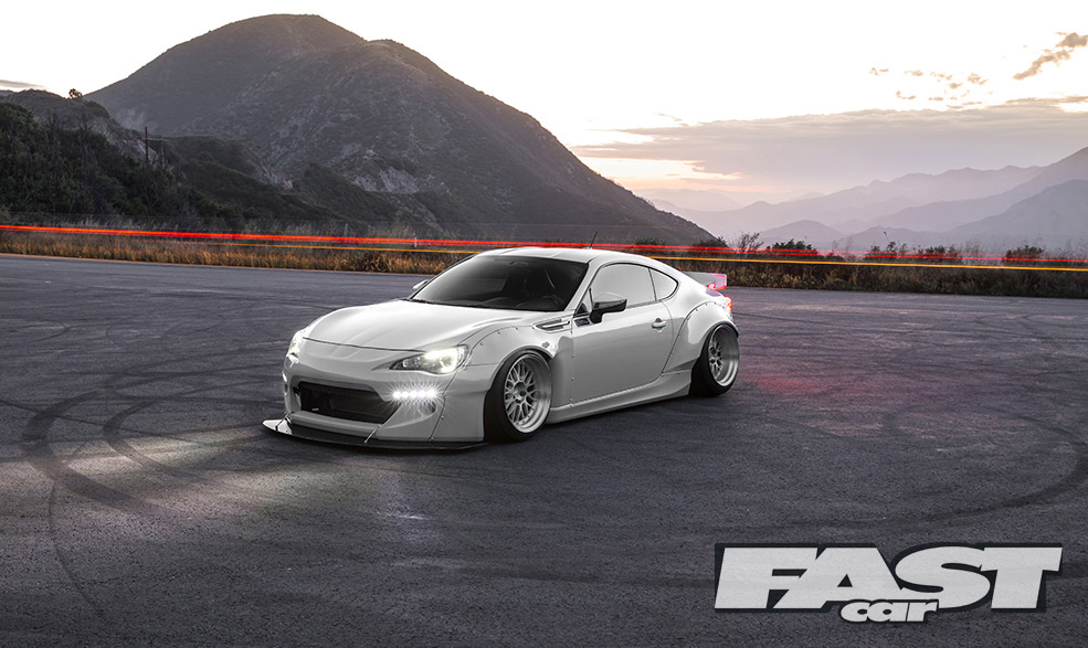 Rocket Bunny V2 wide-body kit (including wide front bumper and splitter, wider front wings, wider rear wings and duck-tail spoiler).