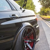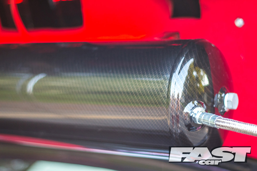 There was a fair bit of arch-cutting required to squish everything in, which was undertaken by Jay and his compadre Nick after a fistful of brave pills. All thankfully went as planned, and it wasn’t long before the car was off to AquaGraphix to get a little carbon- fibre style applied to the Karltons, while the lip kit, wing mirrors and various other bits and bobs were dipped in gold true-weave carbon.