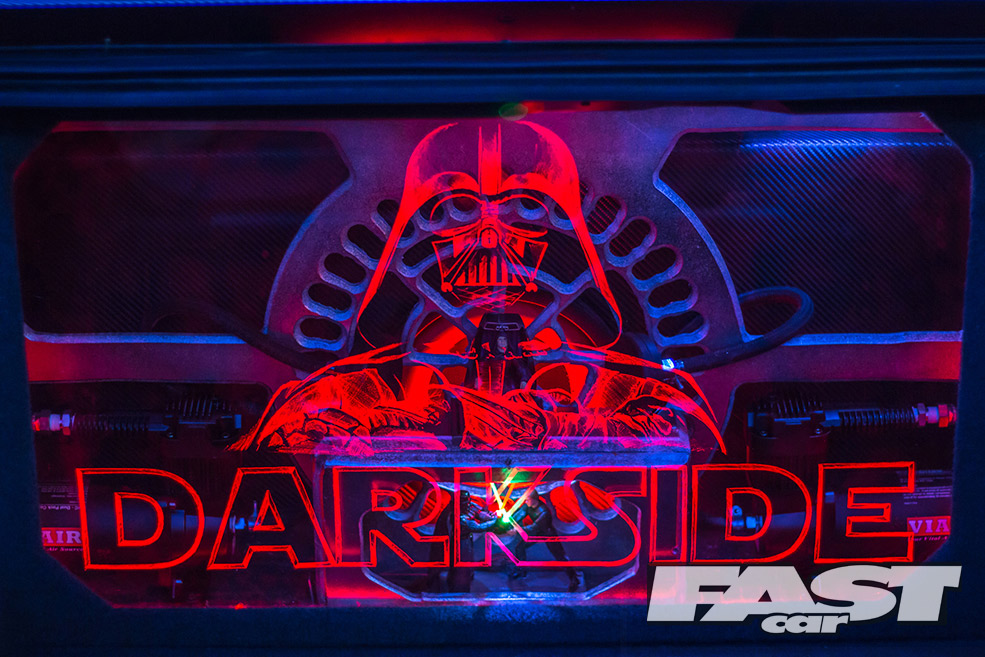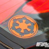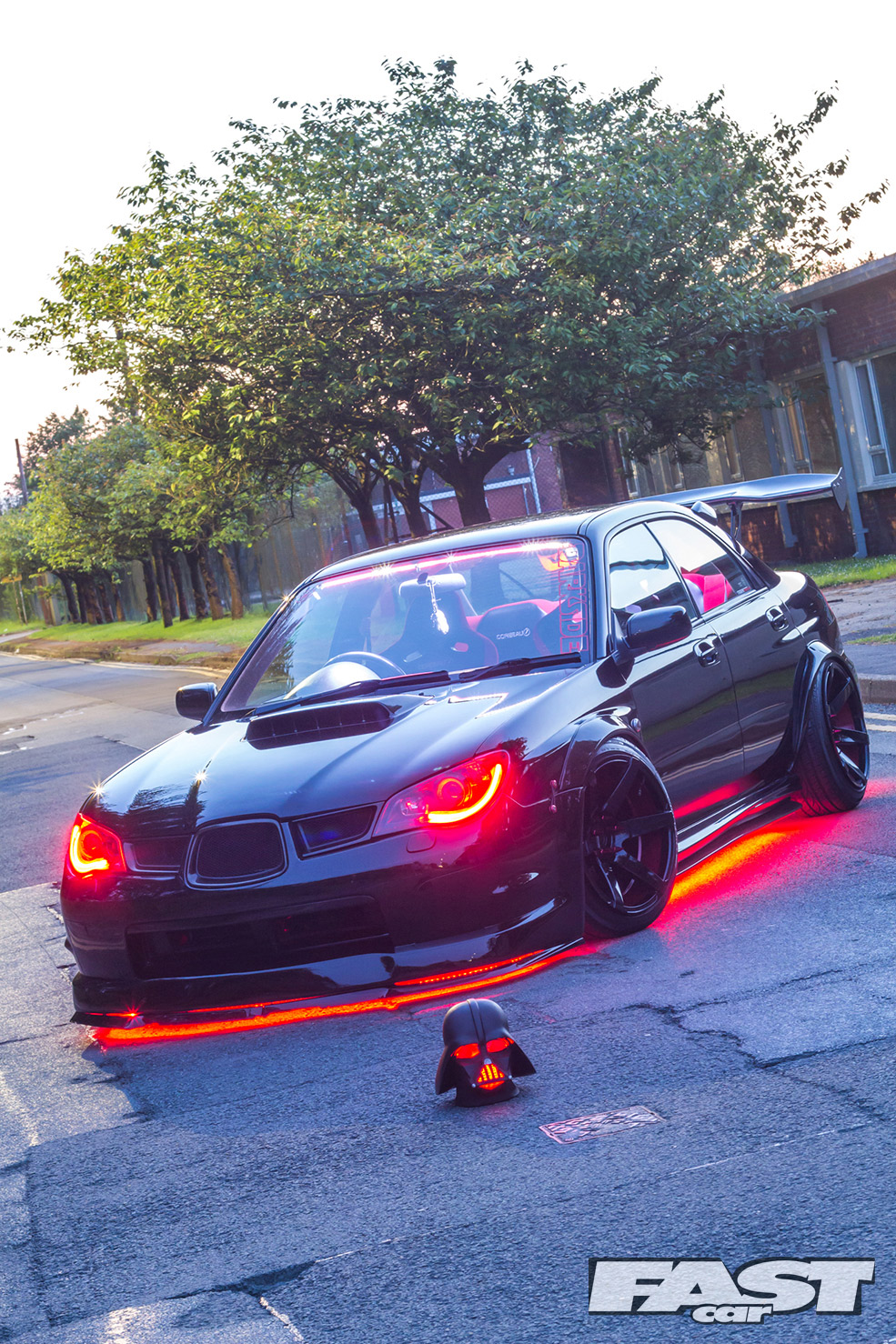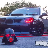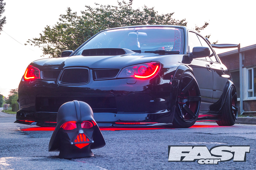 It’s for exactly this reason that Jay of Superior Rides has gone all-out to annoy the Subaru fanboys with this deliciously dirty build. If you’ve ever been at a show and seen a modified Subaru Impreza running air-ride or hydros, you’ll have undoubtedly spotted a steady stream of passers-by turning up their noses and saying that it’s ‘ruined’. Good. Screw them. It’s their attitude that Jay seeks to challenge, and it’s no coincidence that his Scoob’s riddled with Darth Vader iconography. There’s a glorious seam of hate running right through the core of this boxer-toting badass.