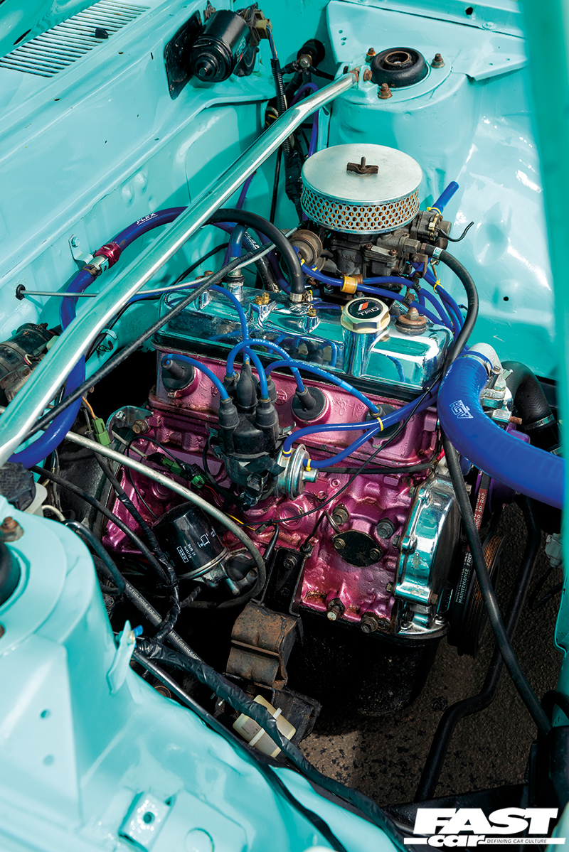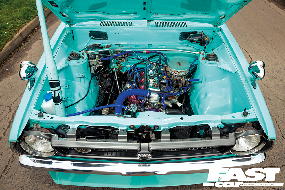The interior now complete with a new retrimmed dash, seats, door cards and headlining, plus a cool Grip Royal mahogany-rimmed steering wheel, Will moved on to alter the Corolla’s ride height by modifying the stock suspension with a set of coilovers up front and a tweak to the stock rear leaf springs. Combined with a set of adjustable lower arms and tie rods, plus a quartet of hubcentric spacers, the stance is spot on.