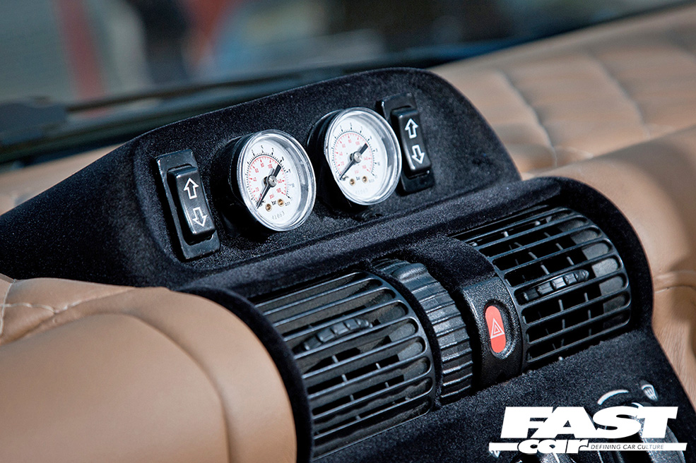 Fully customised Rayvern Hydraulics air suspension kit, Porsche D90 6j wheels with 165/40×16 tyres (f)Porsche D90 8j wheels with 165/45×16 tyres (r).