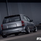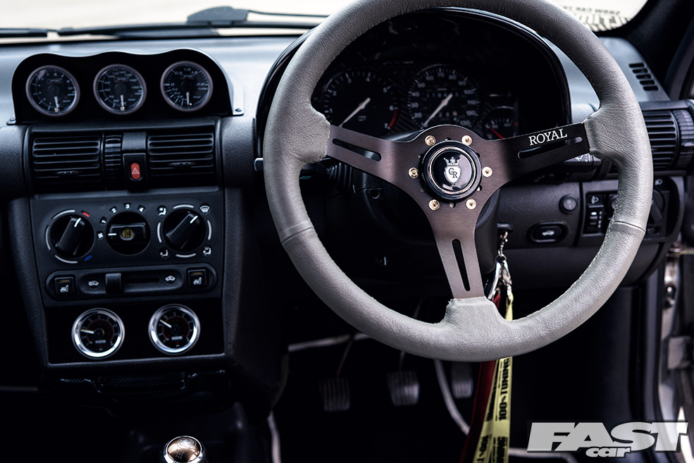 Spurred on by the suspension transformation, Dan proceeded in reworking both the inside and outside of the Corsa to bring them up to his high standards. This included a full leather interior re-trim, complete with touches like the Grip Royal steering wheel and custom hydro/ICE boot install. The outside was cleaned up with a full two-tone respray and, more recently, a set of sharp Image split rims to keep onlookers on their toes.