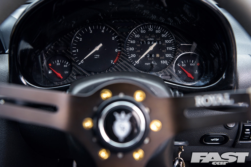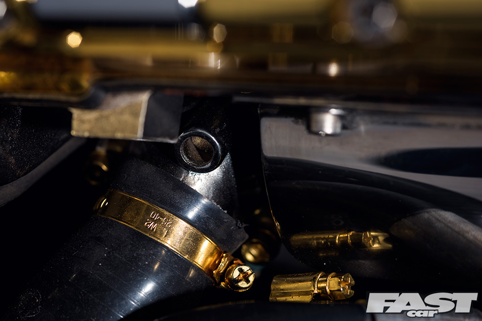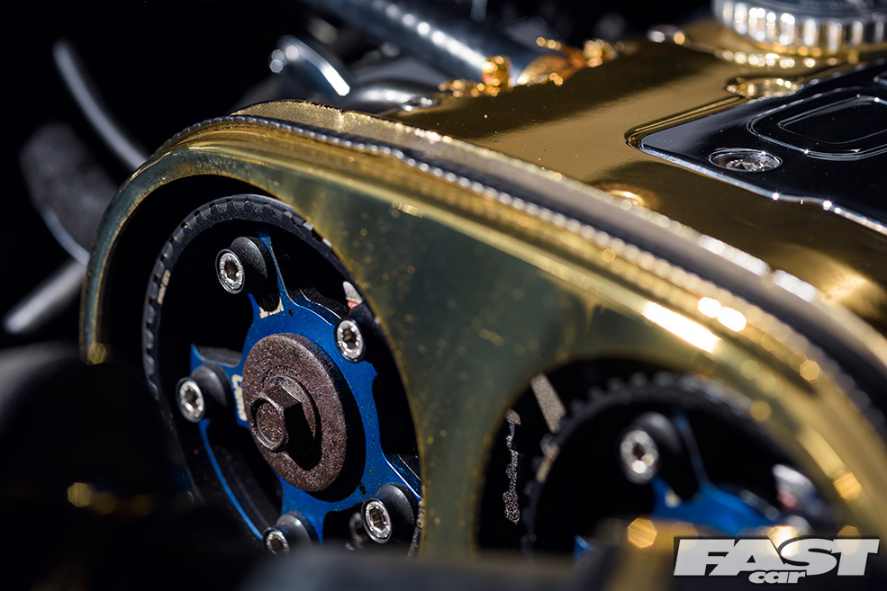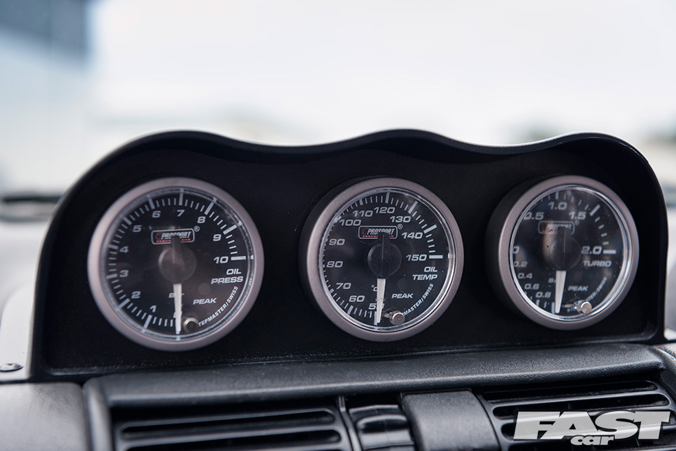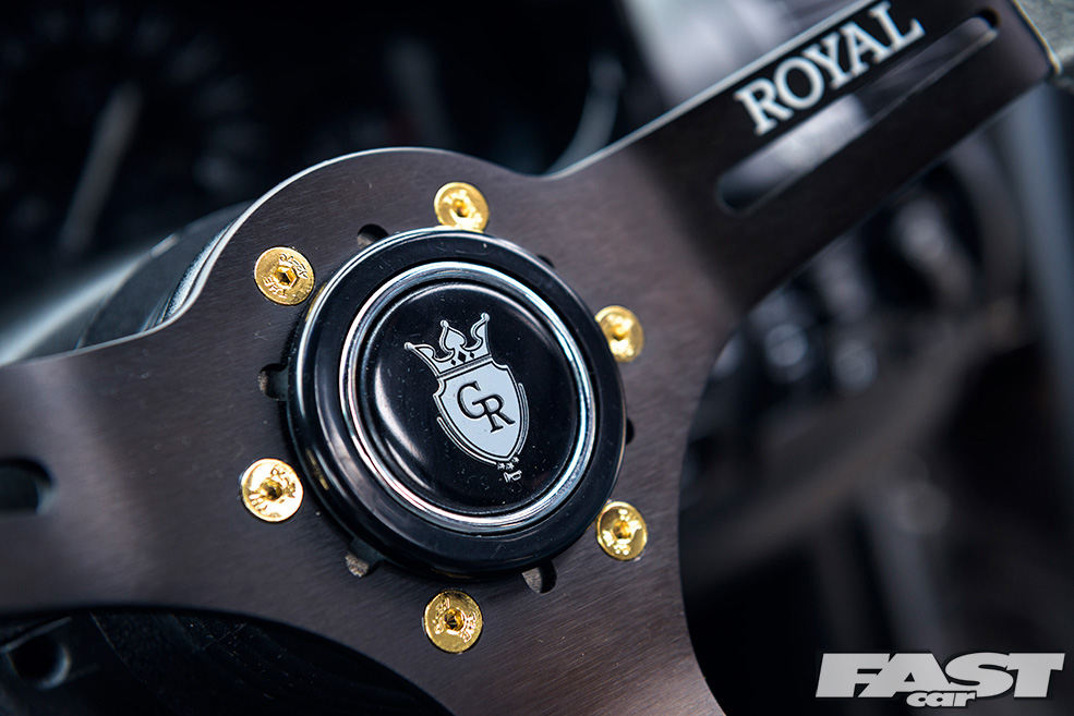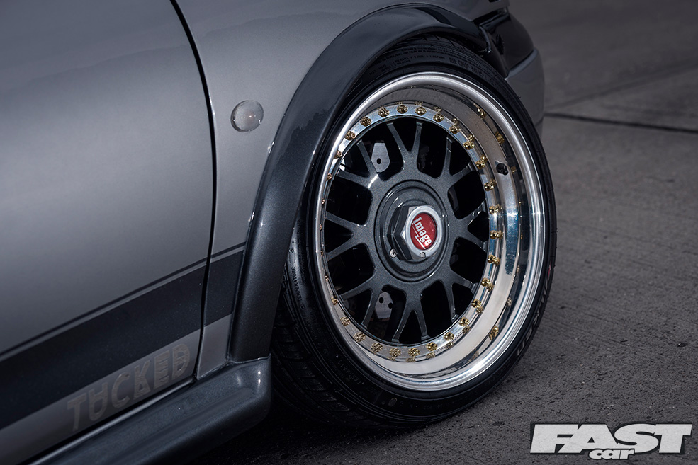 Luckily, the solution lay just around the corner at Rayvern Hydraulics; with the master Ray soon whipping up an adjustable suspension set up to allow Dan to switch ride height in a matter of seconds. The hardware includes Ray’s custom struts up front, and Gaz shocks on the rear, both using Firestone air bags to supply the bouncy stuff. “When it’s low, the sump literally sits on the ground, but when I want to drive it hard, I can return it to an almost standard ride height!” A proud Dan grins.
