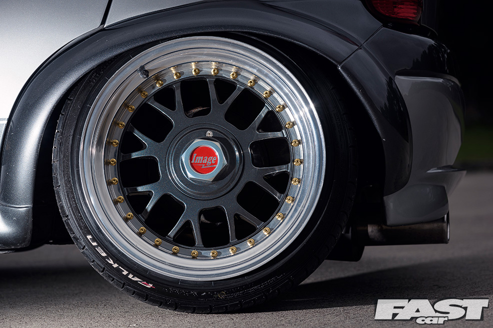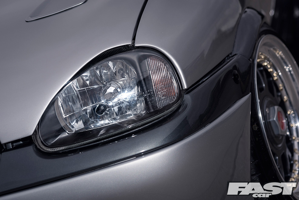 “I started getting good feedback from people, but I still wasn’t entirely happy with the way the car looked.” The solution came in the form of buying new, wider dishes for his BBSs, along with some wide arch extensions, which unsurprisingly warranted a lot of cutting and smoothing in order to avoid rubbing. While this was getting done, Dan extended the smoothing theme to most of the other panels of the car, creating a unique but classy exterior aesthetic from which to build on.