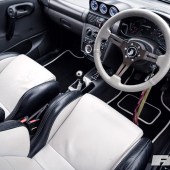 Retrimmed leather bucket seats, rear seats and parcel shelf; full black trim; Grip Royal leather steering wheel; flocked A, B and C pillars; white leather and black flock grab handles; retrimmed leather gear and handbrake gaiters; Subaru gauge pod (with oil pressure, oil temperature and boostgauges); AccuAir controller.