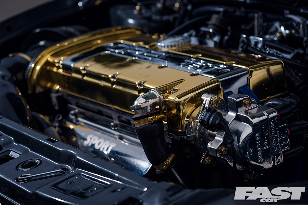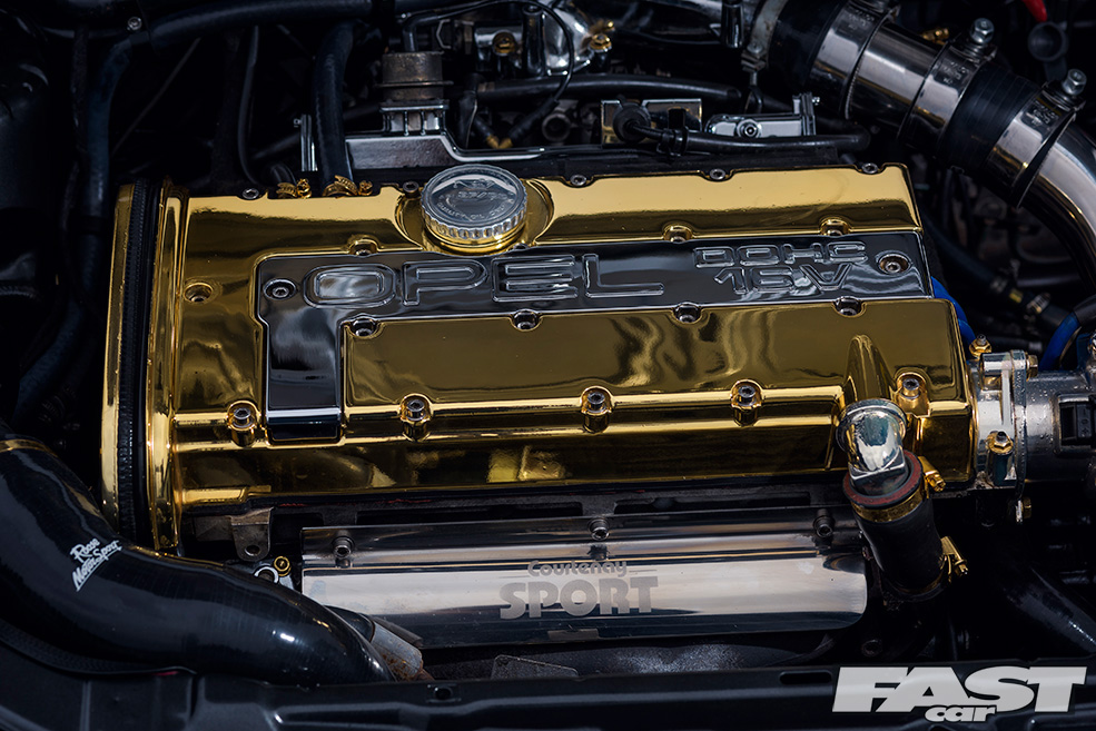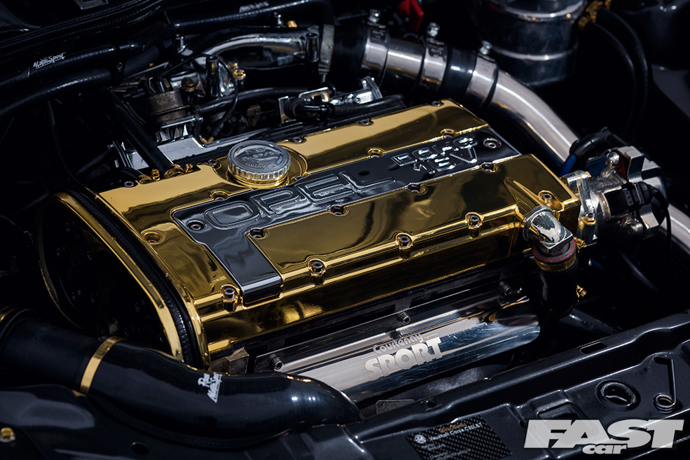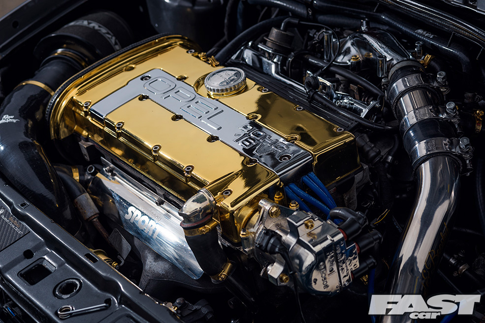 1998cc C20LET turbocharged DOHC 16V engine re-built with ARP bolts throughout, new bearings, standard crankshaft, new head gasket and bolts, new piston rings, re-built head and XE inlet camshafts fitted with adjustable verniers; KKK16 turbocharger; EDS-Motorsport front-mount intercooler with Roose Motorsport piping; Bailey dump valve; stainless steel boost pipes with silicone joiners; Roose Motorsport coolant and ancillary hoses; alloy radiator; coolrunning thermostat; Bailey polished expansion tank; twin slim-line fans; custom 2.5-inch stainless steel exhaust system with 200-cell sports cat and twin silencers; Mocal 13-row oil cooler; Weber Alpha fuel regulator; Walbro 255lph fuel pump; Ford RS Turbo spark plugs; Courtenay Sport actuator; MTech Phase 2 ECU; custom chrome and gold rocker cover; chrome engine dressing; gold-plated nuts, bolts and clips; smoothed and painted bay in Volvo Metallic Grey; wiring extended and tidied; power steering reservoir and battery relocated; F28 sixspeed manual gearbox with 2WD conversion; Quaife limited-slip differential; lightened flywheel; estimated 250bhp.
