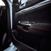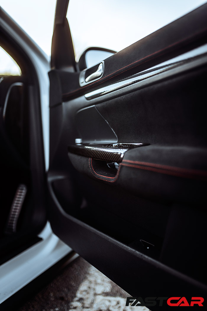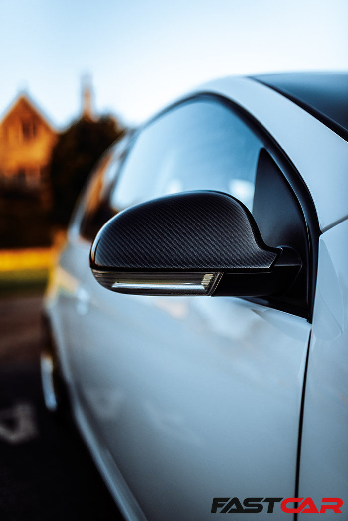 But for all that aggressive stance and the uncompromising mix of parts it’s involved, the GTI’s unmistakeable character hasn’t been diluted at all. It’s a build forged out of subtle details, like the US-spec smooth grille surround and the matching rear bumper that shortens the plate recess, to the accents of carbon fibre on the mirrors and B-pillars that link it back to that luxurious cabin. And if that first glance had missed some of the shades of white the Golf had come in, later passes haven’t – every badge, arch liner and almost every pane of glass has been renewed as part of the restoration.