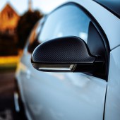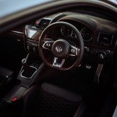 Full bare metal respray in original Candy White, SRS-Tec 25mm wider front wings, door strips smoothed, ¼ bonnet for smoothed bay, new genuine side skirts, new windscreen, new side glass, new arch linings and bolts, all new badges, US spec smooth front grille, US spec rear bumper, carbon fibre mirror covers, carbon fibre b-pillar trims, Edition 30 front valance textured to match side skirts, New Depo headlights, Valeo rear lights, Polo stubby aerial