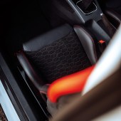 “I was getting a bit annoyed with the harnesses and wanted a cleaner OEM-looking interior,” he says. “The Recaro CS seats turned up at the right time – they’re from a RenaultSport Clio 197 – but they were in terrible condition, the foams were shot and Max said they were the worst he’d seen. Luckily the Pole Positions covered me to get them retrimmed, so I said to Max to just design something and I’d say yes or no.”