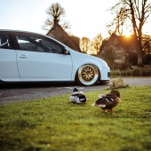 “My mates all said a Mk5 Golf needs to be on 20s, but I always said I’d never go there. Then I put these on, aired it out and was like, ‘yeah, these work!’. For me, they’re probably the best wheels you can buy, and it drives better than it did on the 19s. I’ve got a Caddy on coilovers and it’s horrific, but this feels like driving a normal car. You forget it’s lowered. But you can’t have big wheels like that and not have big brakes to go under them.”