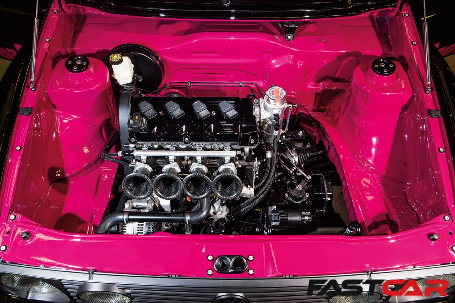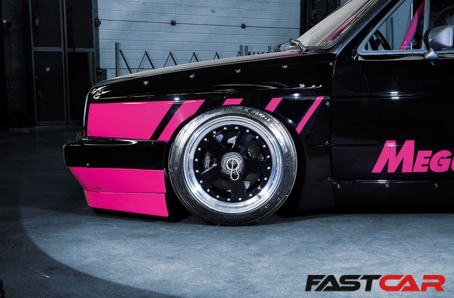 With more bodywork to fill out, custom wheels were a must. Image Wheels had been keen to help and had the flexibility to get the details right, helped by checking dimensions using wheels borrowed from the Renault 5, but the final design is unique. It’s a VR5 wheel, more usually found on a Skyline GT-R, but downsized in this case from 18 to 16-inches. That’s no easy task; the entire structure had to be re-engineered in CAD, but the staggered 9- and 10-inch-wide set fits the Golf’s swollen dimensions perfectly.