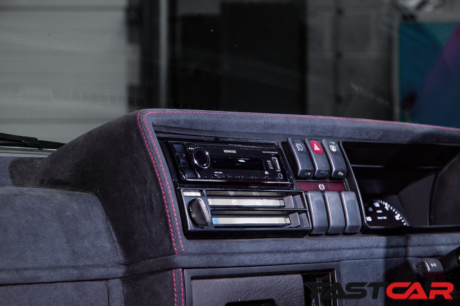At this stage, it couldn’t be anything less than perfect. Having completed the seats, Hawkes Autoworks smoothed unwanted details from the dashboard before trimming it to match, and the hard graft on the bodyshell paid off during reassembly. The weave of the carbon fiber door cards is perfectly aligned from the front to the back of the car and mirrored on each side.