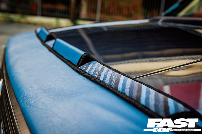 Angel picked up the car and straight away he wholeheartedly admitted that the colour was one of the biggest deciding factors of choosing this car over others; “The colour is the most beautiful shade VW offered”, “LA5Y Helios Blue Metallic!”. The car wasn’t in the best shape, but it was solid and was a great canvas to start with. Thus, the creative juice soon began to flow. Parts were being swapped over from the wrecked coupe, including the motor. Evenings, afternoons, and weekends were consumed with pulling everything off of the coupe shell and getting ready to install it into the Helios. The new car was soon readied for its heart transplant at my house, where the 2.0-litre 16v was quickly pulled to make way for the healthy 2.8 VR6, which was transplanted from the coupe. The car quickly began to take shape. The bay was prepped and coated, the subframes installed and then, in went the motor. With the help of many of the Jersey Hooligans, the man they call “The Whisperer” and Angel’s close friend, Roberto “Berto” Gonzalez, the motor fired up one afternoon and it was time to “work out”! Not many can say that they’ve physically touched every part of their build, but Angel definitely can. The intricacies involved with the details of this car are simply mind blowing. If you don’t pay attention to what you’re looking at, you’ll definitely miss something.