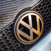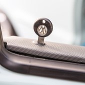 One off front bumper with Beetle grille, carbon wings and bonnet, smoothed bumpers, deleted aerial, German rear clusters, Wolfsburg Edition side repeater blanks, 50-yr old ADAC badge, GTi headlights, splitter, VW script side badges, resprayed in BMW Ice blue.