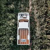 Once the modified VW Rabbit Pickup was back from paint, the slow process of reassembly began, continuing for another three years. “Waiting on parts, changing parts, changing my mind,” says Forest. “Slowly but surely I kept picking away at it.” The bed project was one that tested Forest’s patience, as well as furthered his skill set. “The bed floor wasn’t in the best shape before I started the wood idea,” says Forest. “I think the uneven surface made it challenging for me. I had to notch the back of the wood in some spots and getting the cuts perfect was challenging for me as well. The combo between the wood and air ride box was just something I struggled with. I didn’t have any experience in either of those departments. For sure the hardest thing for me was those stainless lines. Getting them to line up with the push-to-connects was awful. I made it work though. I finished it off with a clear epoxy resin on the wood. I wanted a glass like look.” With the interior finished in 2018 and the recessed air tank and bed wood project completed in October of that year, finishing touches spilled into 2019.