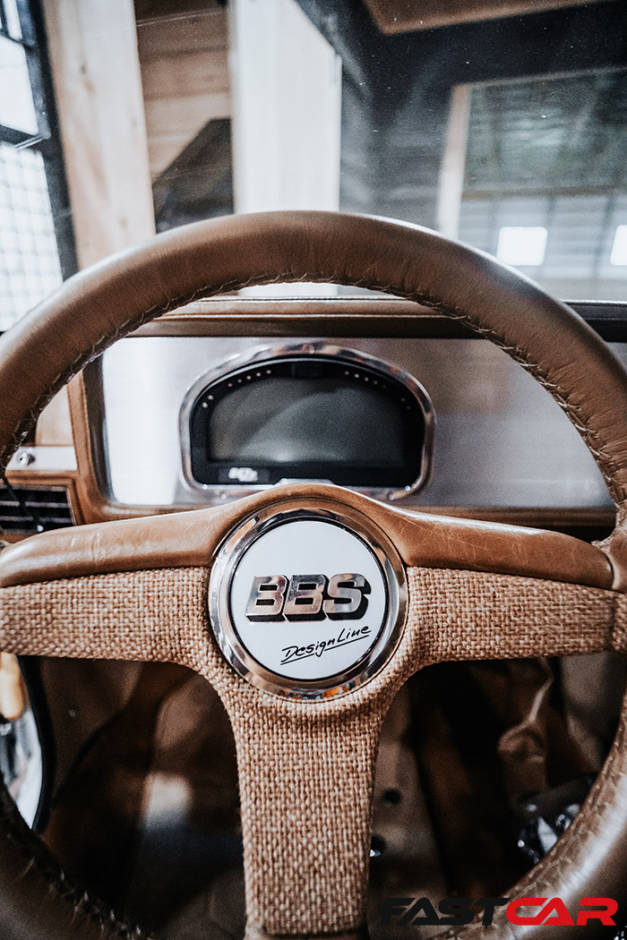 Recaro Trophy seats wrapped in leather/tweed, early Westy dash leather wrapped, Racepak iQ3S cluster with custom bezel brushed, seats/dash/interior done by Dresslers Upholstery, BBS 3-spoke steering wheel wrapped by Swift Stitch Upholstery, custom horn button made to accept BBS 70mm cap made by NBP Finishing, CAE Motosports shifter polished by NBP Finishing