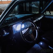 It was 2016 and the Caddy was in primer and ready for paint. Forest had also installed the Seen-It 4-link rear suspension by this point. “I sent the pickup to R Miller Auto around March of 2016,” says Forest. Ryan there made sure the body lines were razor sharp and expertly laid down the Honda Grand Prix White, including spraying the brake booster. He also removed the fuel filler door and relocated it to inside the bed, a detail that can be easily overlooked but one that Forest is keen on. And three cheers for not switching to single rounds up front.