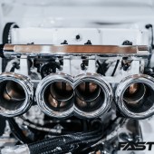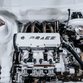 2.0-litre ABA 8v with TT 276 cam, TT big valves, Swoops headers, Fresh Reflections radiator and catch can, 02A five-speed, lightened flywheel, Drake valve cover (1 of 4 in existence), Borla ITBs, Megasquirt Microsquirt stand-alone, engine simplified as much as possible, all wiring done by Matt at Eurokraft Performance, all chrome and polish done by NBP finishing and Shore Polishing and Finishing and 4 Ever Kustoms
