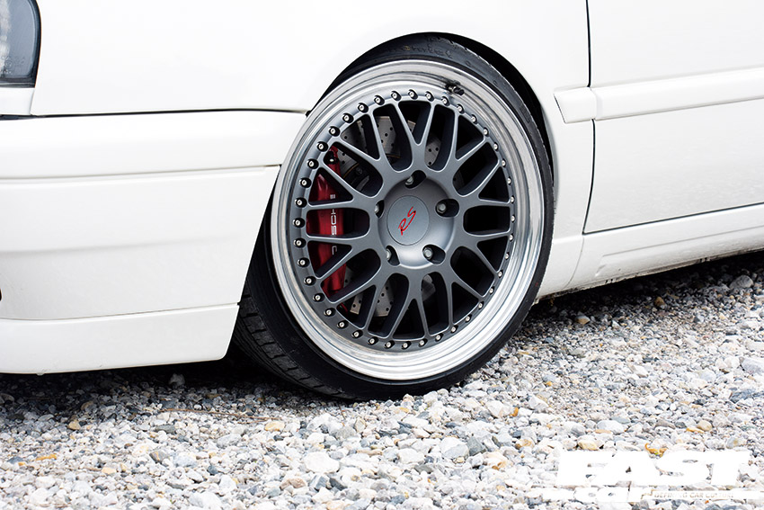 “I had changed a few details since I first built it, so it did a season on BBS RS and then I had a set of gold-centred Le Mans, but always in 17-inch,” he says. “The ‘Big Red’ brake conversion is well known, but I had to go up to 18-inch for clearance. So I went with a set of Cargraphic Racing wheels, which I’d seen on the KPK ‘Green Mamba’ Mk3 R36 Turbo, and built them to go over the brakes.”