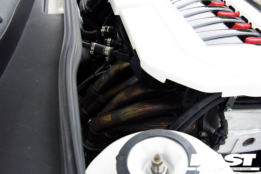 “I was able to sell the Bora’s old VR6 engine, which meant I could really do the conversion how I wanted,” he explains, lifting the bonnet on its impossibly clean replacement. “Stefan and I rebuilt the engine and painted everything black, then, while the engine was out, we shaved the bay. This was a lot of work – we had to relocate the power steering and battery, delete the air conditioning and build a new wiring loom, and all of this was done in my garage before a friend painted it Candy White.”