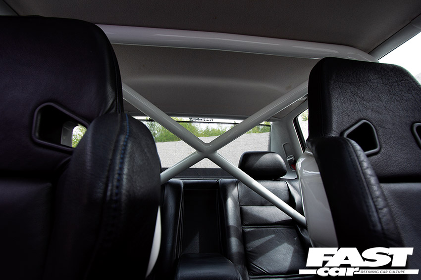 Having gone to that trouble, it hasn’t gone back together in factory tune. There’s a Milltek exhaust manifold, packed in next to the firewall, liberating a little more top-end power without compromising its willingness at low revs, while the custom intake helps de-clutter the inner wings. At a little over 250hp, it has near enough 50% more power than the Vento VR6, and all without stressing any of the engine’s mechanical parts. In turn, the VR6 transmission has only required a clutch upgrade to help channel that performance to the wheels, while the Mk5 gear linkage offers tighter shifts than Volkswagen managed in the 1990s.