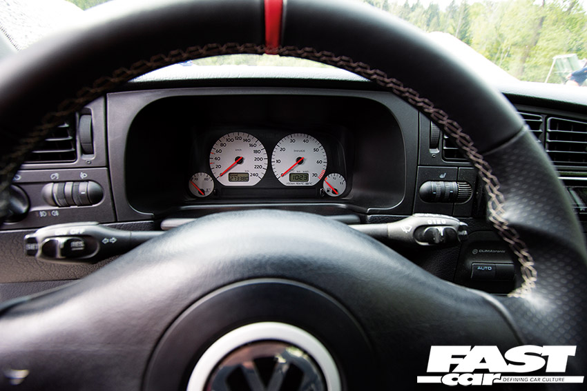 VR6 swaps might seem like an easy route, but the later technology threw a few hurdles into the mix. Switching to the Bora’s drive-by-wire system required a new throttle pedal, and the help of Christian’s friend Stefan to build a custom wiring loom. The upshot was a power hike to 204hp, put down without the weight of four-wheel drive or the heavier Mk4 body, and without the disjointed look of wedging later dials into the dashboard it retained as much of the Vento’s original look and feel as possible.. Better performance than any factory version, and without the need to shout about it.
