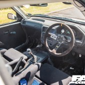 DJM went the whole hog when conceiving this beast by adding entirely re-worked suspension mounting points and a new transmission tunnel to the motorsport-prepped bodyshell, helping to accommodate the much beefier powerplant. Rally-spec AVO coilovers that offer plenty of clearance finish the chassis off, with a set of monstrous Wilwood stoppers now tucked under those Braid rally alloys.