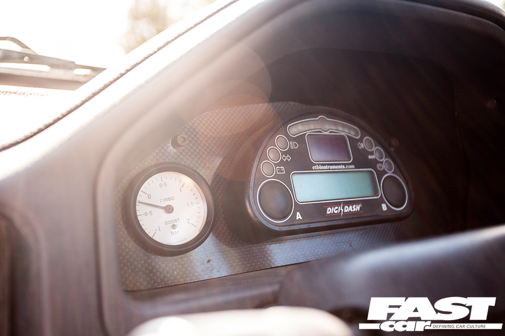 With the driveshaft inclination showing no less than 30 degrees and the wiring loom made up of harnesses from four different cars, Dan was forced to practically take the entire thing apart and start from scratch when it came to several aspects of the build. Still, with some seriously impressive motorsport-derived parts already attached, and the potential to easily make up to 400bhp from that engine with very little stress, it was a path that was well worth continuing down.