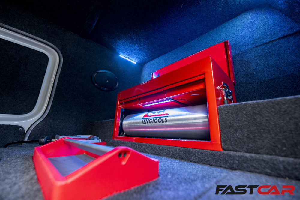 For those of you who want to explore every detail of this build, we have a full build thread on the website. It covers each upgrade, modification, and transformation in comprehensive detail. From the exterior makeover using Arlon’s 401 Gloss Red vinyl wrap to the meticulous interior customization featuring Teng Tools toolboxes and clever hidden compartments, you’ll find a wealth of information and inspiration in this thread.