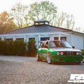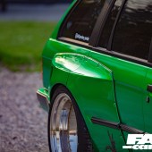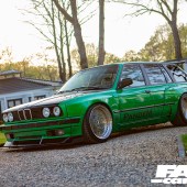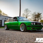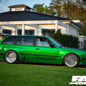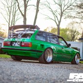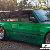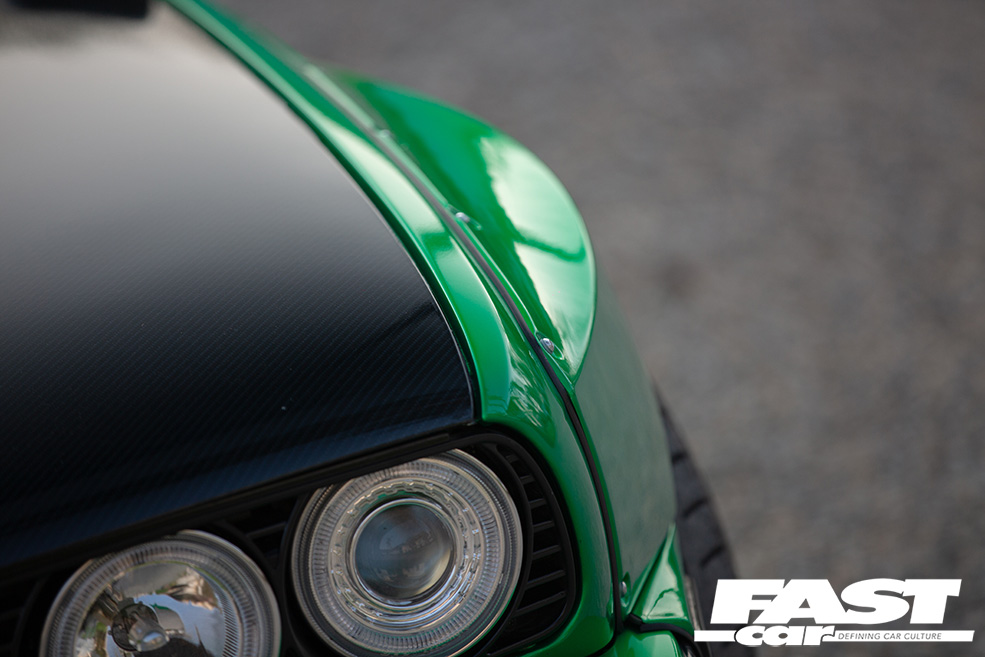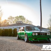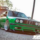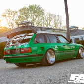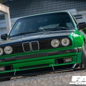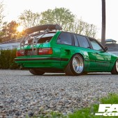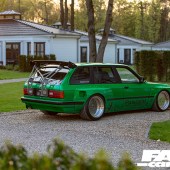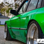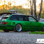 Pandem widebody kit, custom green wrap, custom General Wheels rear spoiler, E36 front splitter with M3 lip