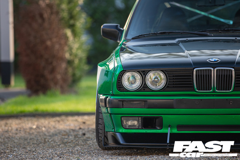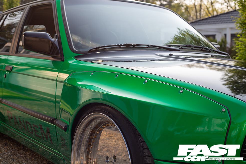 As it turned out, it wasn’t just any bodykit that he had his eye on, but the much-revered and drooled-over Pandem kit – developed by Rocket Bunny for the E30 saloon, which Sander sought to cunningly rework to fit. While he was busy with the measuring tape, he also figured out that he’d be wanting some truly fat wheels to fill out the new corners, so he set about searching for such things on the interwebs. In due course, the ideal set was stumbled upon – a refreshingly wacky quartet of Carline 3-piece splits, rich in old-school Centerline-style shininess, and at 10.5-inches wide they seemed like they’d be girthsome enough to satisfy. However, after offering it all up it transpired that he’d need to go even wider – but nil desperandum, he simply grabbed a broader set of lips and rebuilt the wheels to be even meatier.